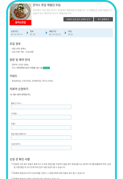 - 정확하고 빠른 체험단 모집